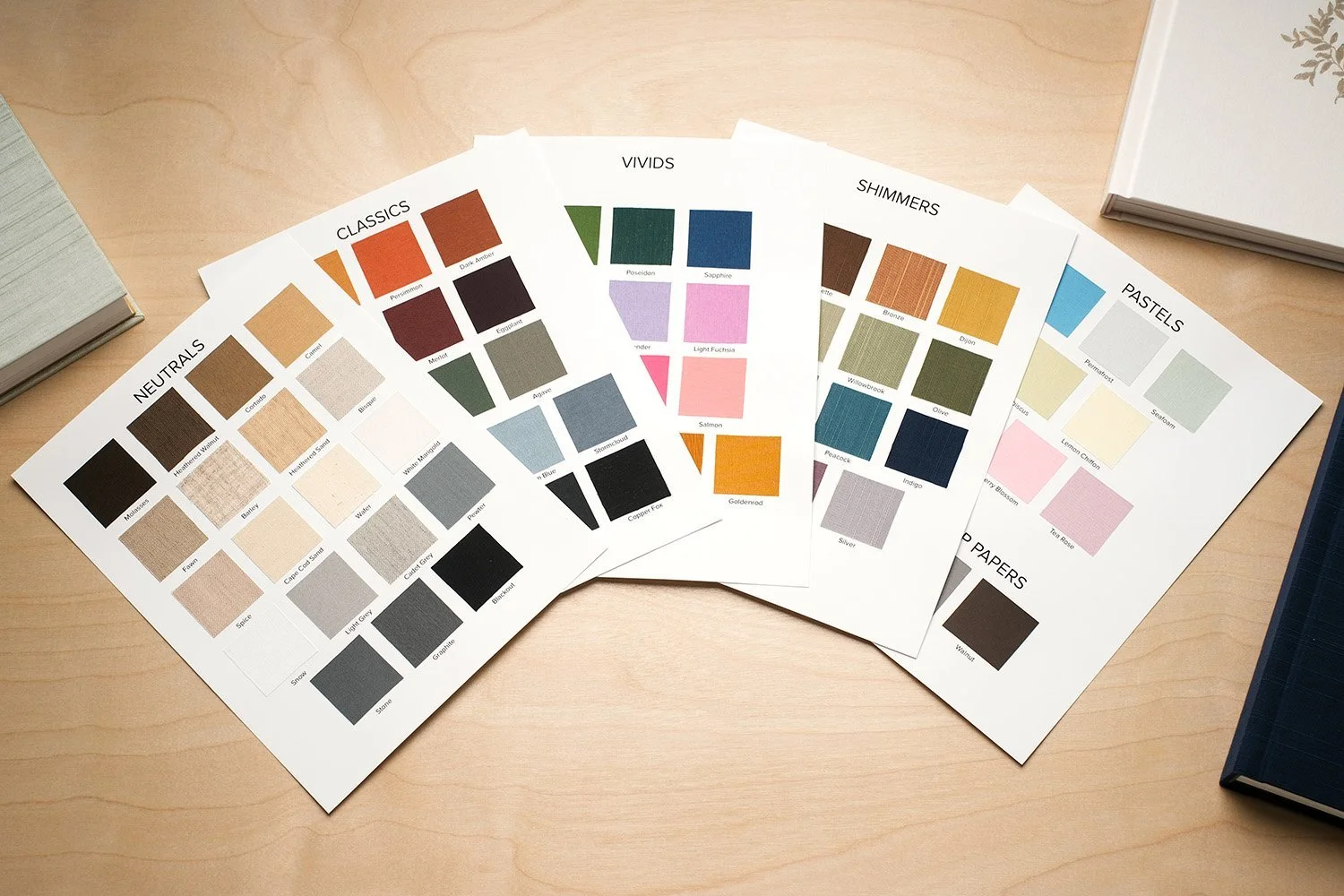 Album Products Artisan Album Deckled Album Museum Case Matted Slipcase Double Folio Album Fabric Swatch Pack